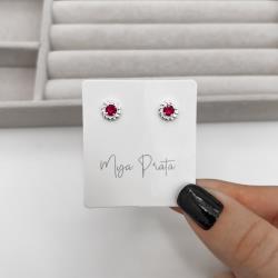 Descrição: Brinco zircônia redonda cereja detalhe torcido 7mm fabricado(a) em prata