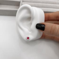 Brinco zircônia redonda cereja detalhe torcido 7mm