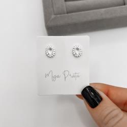 Brinco zircônia oval cristal detalhe torcido 10mm | Mya Prata