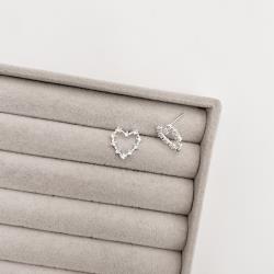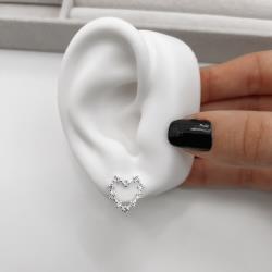 Brinco coração vazado com zircônias 14mm | Mya Prata