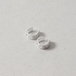 Argola click larga cravejada 11mm detalhe geométrico vazado | Mya Prata