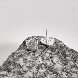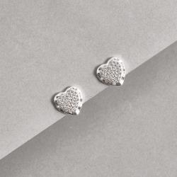 Brinco coração cravejado borda ondulada 13mm | Mya Prata