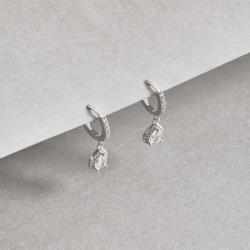 Argola click cravejada 11mm pingente zircônia gota cristal | Mya Prata