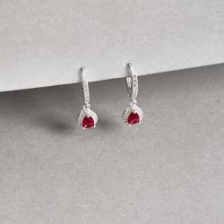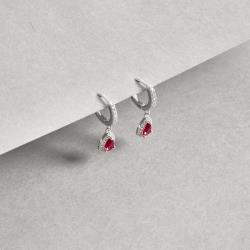 Argola click cravejada 11mm pingente zircônia gota rubi | Mya Prata
