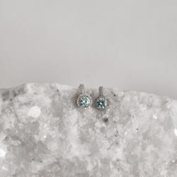 Brinco meia argola moissanite aquamarine 5mm com cravejado ródio