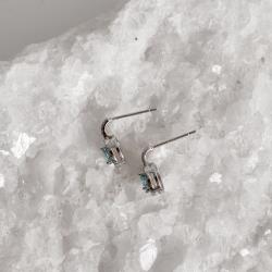 Brinco meia argola moissanite aquamarine 5mm com cravejado ródio | Mya Prata