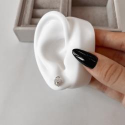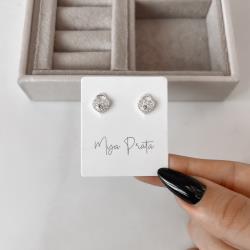 Brinco cadeado coração cravejado 9mm | Mya Prata