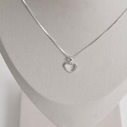 Conjunto brinco e colar coração vazado metade cravejado 12mm 45cm | Mya Prata