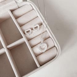 Conjunto brinco e colar coração vazado cravejado 13mm 45cm | Mya Prata