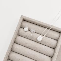 Conjunto brinco e colar zircônia oval com cravejado 10mm 45cm | Mya Prata