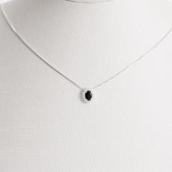 Conjunto brinco e colar zircônia oval ônix com cravejado 10mm 45cm | Mya Prata