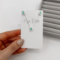 Conjunto brinco e colar zircônia navete acqua com cravejado 10mm 45cm