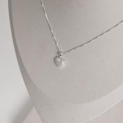 Conjunto brinco e colar coração cravejado com borda 12mm 45cm | Mya Prata