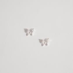 Conjunto brinco e colar borboleta cravejada 12mm 45cm | Mya Prata