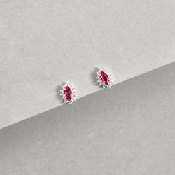 Conjunto brinco e colar zircônia navete cereja com cravejado 9mm 45cm | Mya Prata