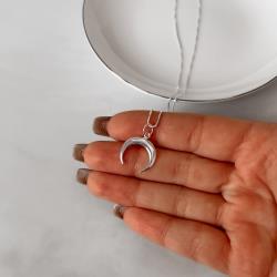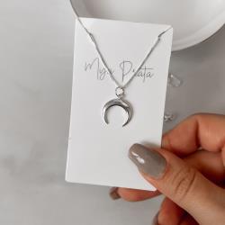 Colar pingente lua invertida fina 16mm 45cm | Mya Prata