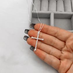 Colar pingente cruz fio bolinhas 30mm 45cm | Mya Prata