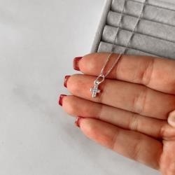 Colar pingente cruz cravejada 7mm 40cm | Mya Prata