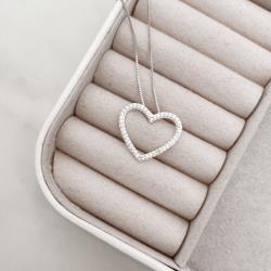 Colar coração vazado cravejado 23mm 45cm | Mya Prata