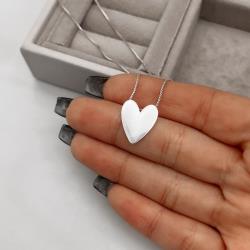 Colar coração longo passante 15mm 45cm | Mya Prata