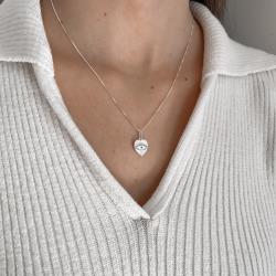 Colar pingente coração detalhe olho cravejado 12mm 45cm | Mya Prata