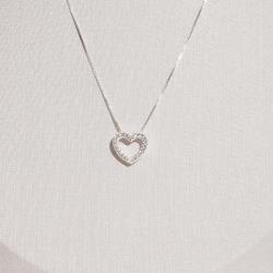 Descrição: Colar coração vazado cravejado passante 12mm 45cm fabricado(a) em prata