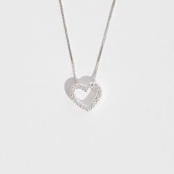 Colar coração vazado cravejado passante 12mm 45cm | Mya Prata