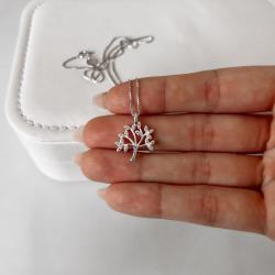 Colar pingente árvore folhas com zircônias 16mm 45cm | Mya Prata