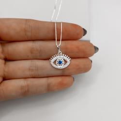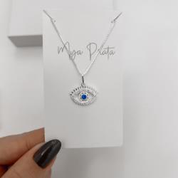 Colar pingente olho cravejado 17mm 45cm | Mya Prata