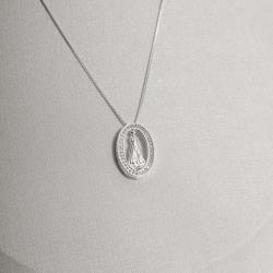 Descrição: Colar medalha oval Nsa. Sra. Aparecida cravejada 18mm 45cm fabricado(a) em prata