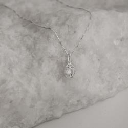 Colar pingente zircônia cristal oval cravejada 9mm 45cm | Mya Prata