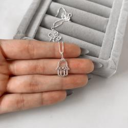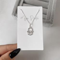 Colar pingente mão detalhe coração 12mm 45cm | Mya Prata