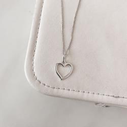 Colar pingente coração vazado direito 15mm 45cm | Mya Prata