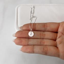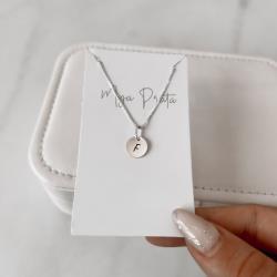 Colar pingente medalha letra F 10mm 40cm | Mya Prata