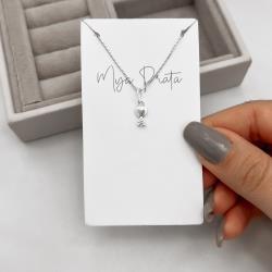 Colar pingente coração e zircônia 10mm 40cm | Mya Prata