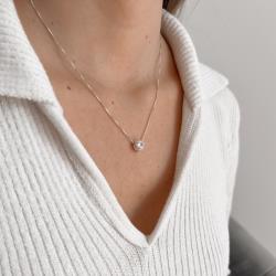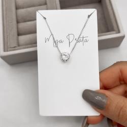 Colar coração cravejado com zircônia coração passante 8mm 45cm | Mya Prata