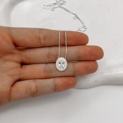 Colar zircônia oval com cravejado duplo 14mm 45cm | Mya Prata