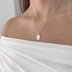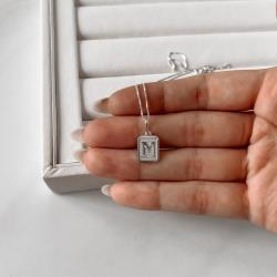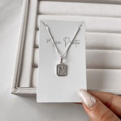 Colar pingente placa letra M 12mm 45cm | Mya Prata