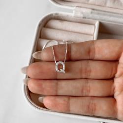 Colar letra Q cravejada 9mm 45cm | Mya Prata