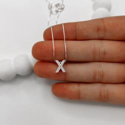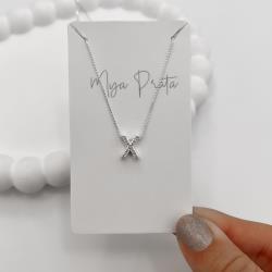 Colar letra X cravejada 9mm 45cm | Mya Prata