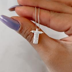 Colar Cristo cravejado 15mm 45cm | Mya Prata