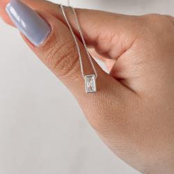 Colar zircônia retangular 7mm 40cm | Mya Prata