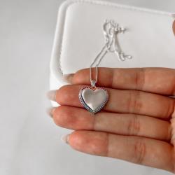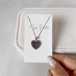 Colar pingente coração borda cravejada colorida 17mm 45cm