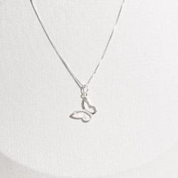 Descrição: Colar pingente borboleta vazada de lado 11mm 45cm fabricado(a) em prata