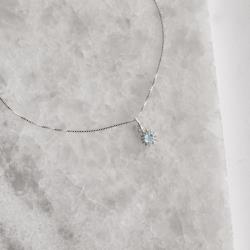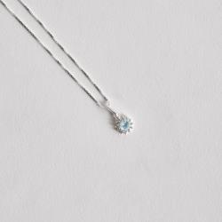Colar pingente zircônia redonda azul claro com cravejado 7mm 45cm | Mya Prata