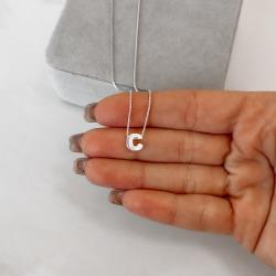 Colar letra C detalhe zircônia 7mm 45cm | Mya Prata