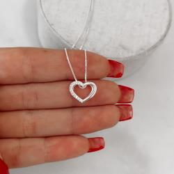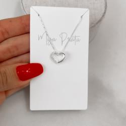 Colar coração vazado metade cravejado lado direito 13mm 45cm | Mya Prata