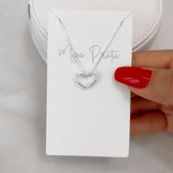 Colar coração vazado metade cravejado lado esquerdo 13mm 45cm | Mya Prata