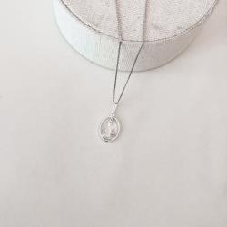 Colar pingente Nsa. Sra. Aparecida oval cravejada 14mm 45cm | Mya Prata
