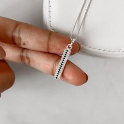 Colar pingente placa cravejada zircônias cristal e preto 21mm 45cm | Mya Prata